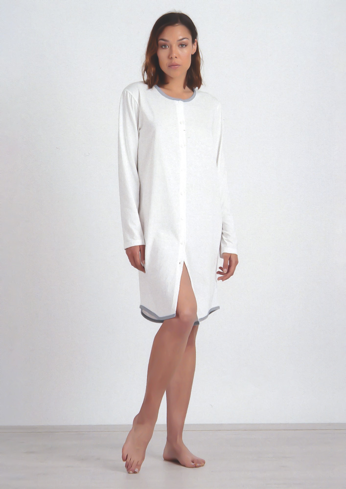 La camicia da notte della linea Mida è un capo di abbigliamento intimo femminile pensato per offrire comfort e relax durante le ore di riposo. Realizzata in cotone morbido ed elastico, la sua vestibilità aderente e confortevole valorizza la silhouette femminile, mentre il materiale principale del 100% cotone garantisce un’ottima traspirabilità e resistenza al calore, mantenendo il corpo fresco e asciutto durante le ore di riposo. La camicia da notte Mida è ideale per donne che cercano un capo di abbigliamento intimo femminile confortevole e pratica, pensato per offrire relax e rilassamento durante le ore di riposo.