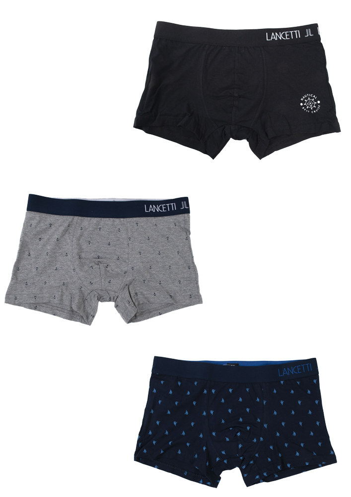 I boxer moda uomo Lancetti sono un prodotto di abbigliamento ideato per gli adulti. Questi boxer, realizzati in cotone stretch, offrono comfort e facilità di indossamento durante l'orario di riposo. I boxer moda uomo Lancetti presentano il marchio Lancetti e sono adatti al sesso maschio per una fascia età Adulto. La composizione del prodotto include 95% cotone e 5% poliuretano (Elastam).