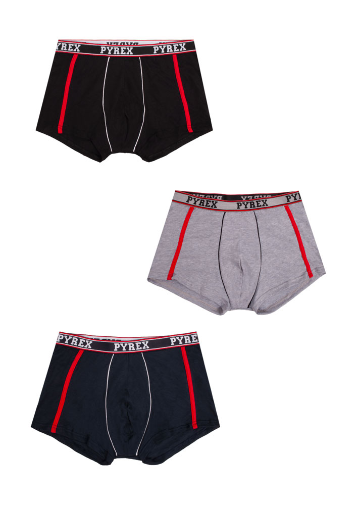 Il prodotto descritto è un boxer uomo Pyrex E, appartenente alla categoria Slip e boxer, marchio Pyrex, fascia di età Adulto, materiale principale Cotone Stretch, sesso Maschio.