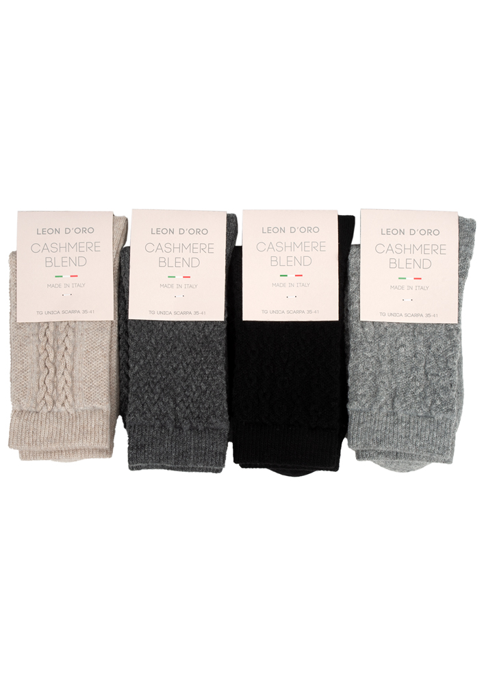 Queste calze sono un'elegante scelta per l'abbigliamento femminile. In particolare, sono realizzate interamente in cashmere, un materiale di alta qualità e confortabile che garantisce un comfort senza pari durante le ore di riposo. Il brand Leon D'Oro è noto per la sua attenzione ai dettagli e alla qualità dei propri prodotti, che si riflette nella finezza del tessuto e nell'eleganza delle linee di queste calze. Destinati a donne che cercano un prodotto di alta qualità e comfort, con una fitness stretta e flessibile che permette una libertà di movimento senza limitazioni durante il riposo.