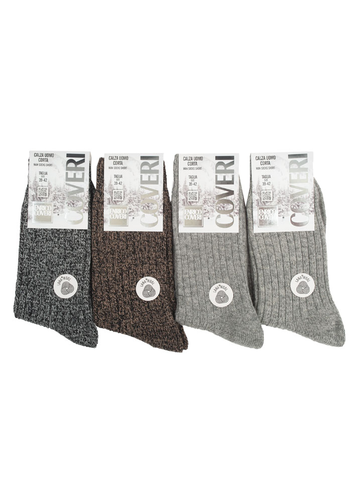 "Calze corta di lana Coveri per uomini, realizzate con una miscela di 46% lana, 42% acrilico ASA/ABS e 12% poliammide. Queste calze sono ideali per l'uso in ambiente freddo o all'interno, garantendo un comfort e una buona traspirabilità ai adulti. Sono disponibili in una vasta gamma di colori e stili, per soddisfare le esigenze di ogni uomo."