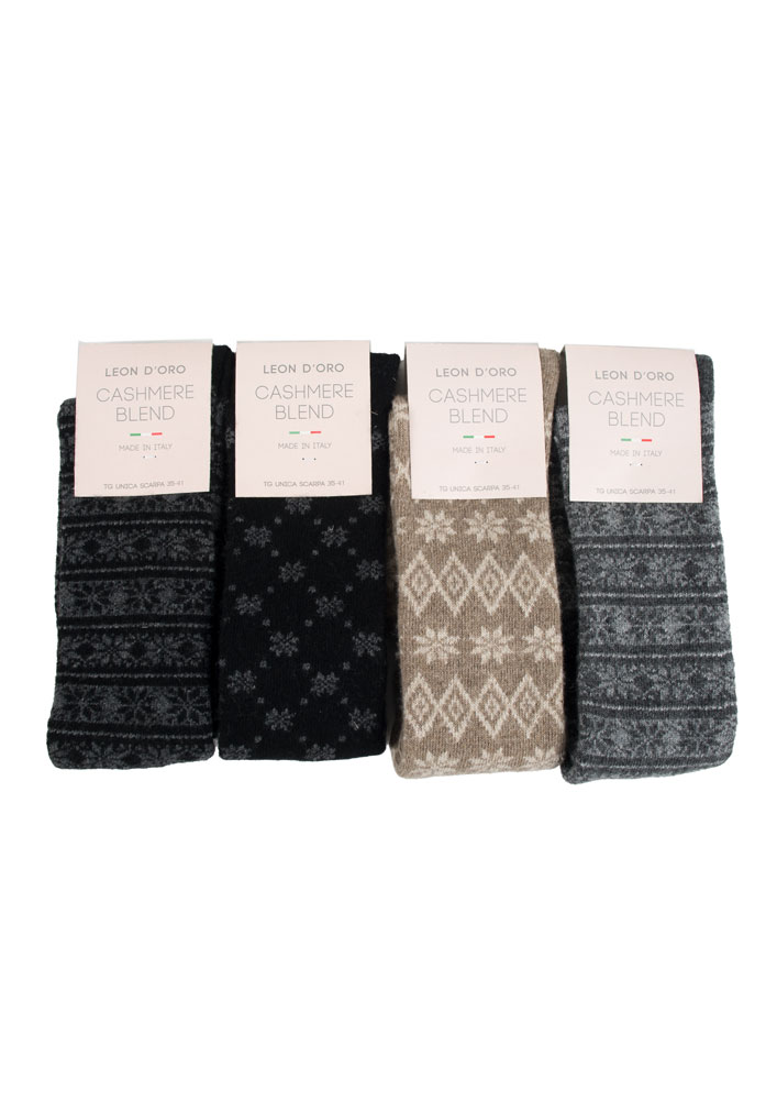 Questa calza lunga è un'elegante scelta per l'abbigliamento femminile. Realizzata interamente in cashmere, un materiale naturale e confortevole che garantisce un comfort senza pari durante le ore di riposo. Il brand Leon D'Oro è noto per la sua attenzione ai dettagli e alla qualità dei propri prodotti, che si riflette nella finezza del tessuto e nell'eleganza delle linee di questa calza lunga. Destinata a donne che cercano un prodotto di alta qualità e comfort.