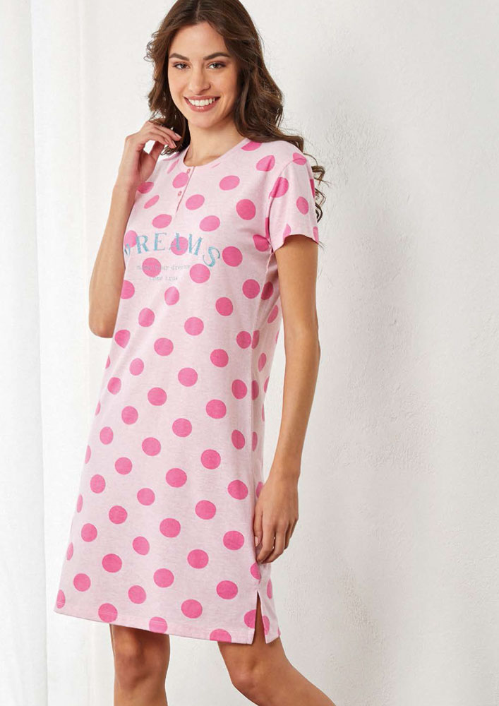 Camicia da notte manica corta donna Il Granchio con stampa all over e scollo serafino.
