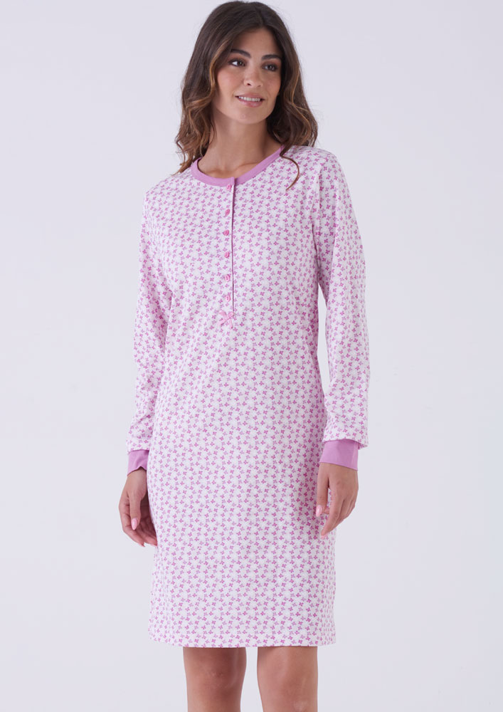 La camicia da notte con manica lunga della linea Karelpiù è un capo di abbigliamento ideale per il riposo serale. Realizzato interamente in cotone, un materiale naturale e confortevole che garantisce un riposo senza pari. La sua composizione 100% cotone rende questa camicia da notte comoda e leggera, perfetta per chi cerca comfort e relax durante le ore di sonno.