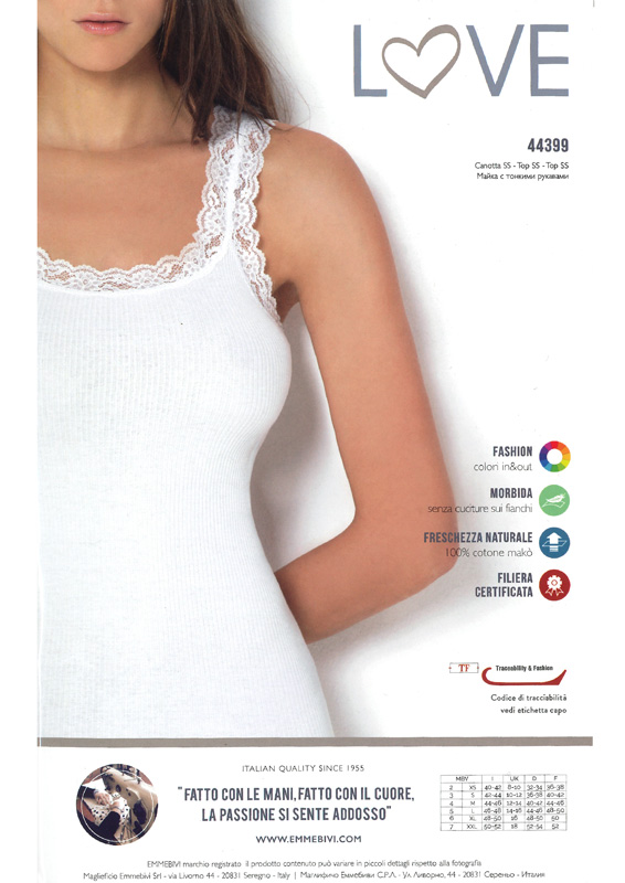 La canotta spalla stretta della linea Emmebivi è un accessorio di alta qualità pensato per offrire comfort e sensazione di freschezza alle donne che lo indossano. Realizzata in 100% cotone CO, il materiale principale della canotta, offre morbidezza, elasticità e una buona durata nel tempo. Il design della canotta è pensato per offrire comfort e sensazione di freschezza alle donne che la indossano. Inoltre, la canotta Emmebivi è realizzata con un sistema di taglio e cucitura che garantisce una buona stabilità e supporto al corpo, riducendo al minimo la possibilità di deformazioni o scomodità. La canotta Emmebivi è quindi un accessorio di alta qualità pensato per offrire comfort e sensazione di freschezza alle donne che la indossano.