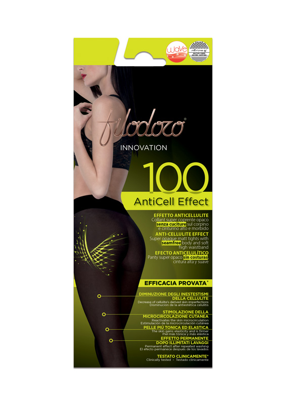 ANTICEL EFFECT 100 E' ALLEATO DI BELLEZZA CONTRO GLI INESTETISMI DELLA CELLULITE. CON UN SEMPLICE GESTO, COME INDOSSARE IL TUO COLLANT PREFERITO, REGALA UN TRATTAMENTO QUOTIDIANO, GRAZIE ALLA SPECIALE COMBINAZIONE DI UN FILATO INNOVATIVO CHE STIMOLA LA MICROCIRCOLAZIONE CUTANEE NERINO G. L'ASSENZA DI CUCITURE SUL CORPINO E SUL CINTURINO ALTO E MORBIDO LO RENDONO SUPER CONFORTEVOLE.