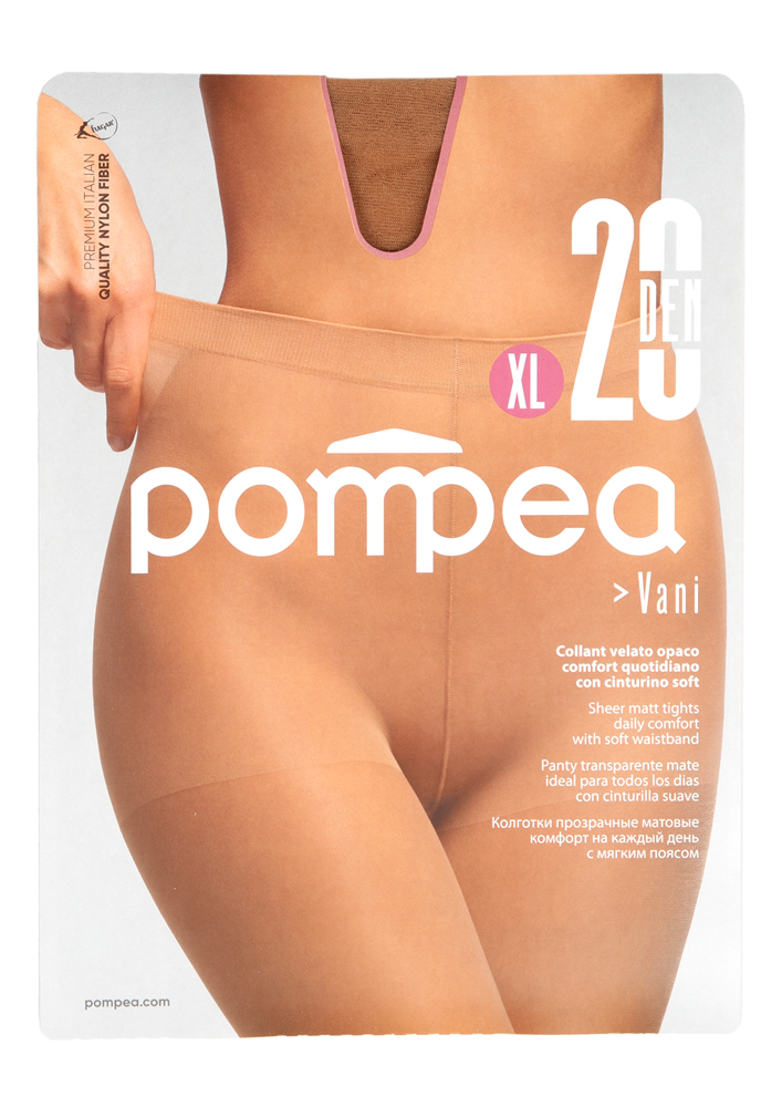 Questo collant è un'elegante scelta per l'abbigliamento intimo femminile. In particolare, sono realizzati interamente in poliammide, un materiale resistente e duraturo che garantisce una tenuta senza pari. Il brand Pompea è noto per la sua attenzione ai dettagli e alla qualità dei propri prodotti, che si riflette nella finezza del tessuto e nell'eleganza delle linee di questi collant. Destinati a donne che cercano un prodotto di alta qualità e resistenza.