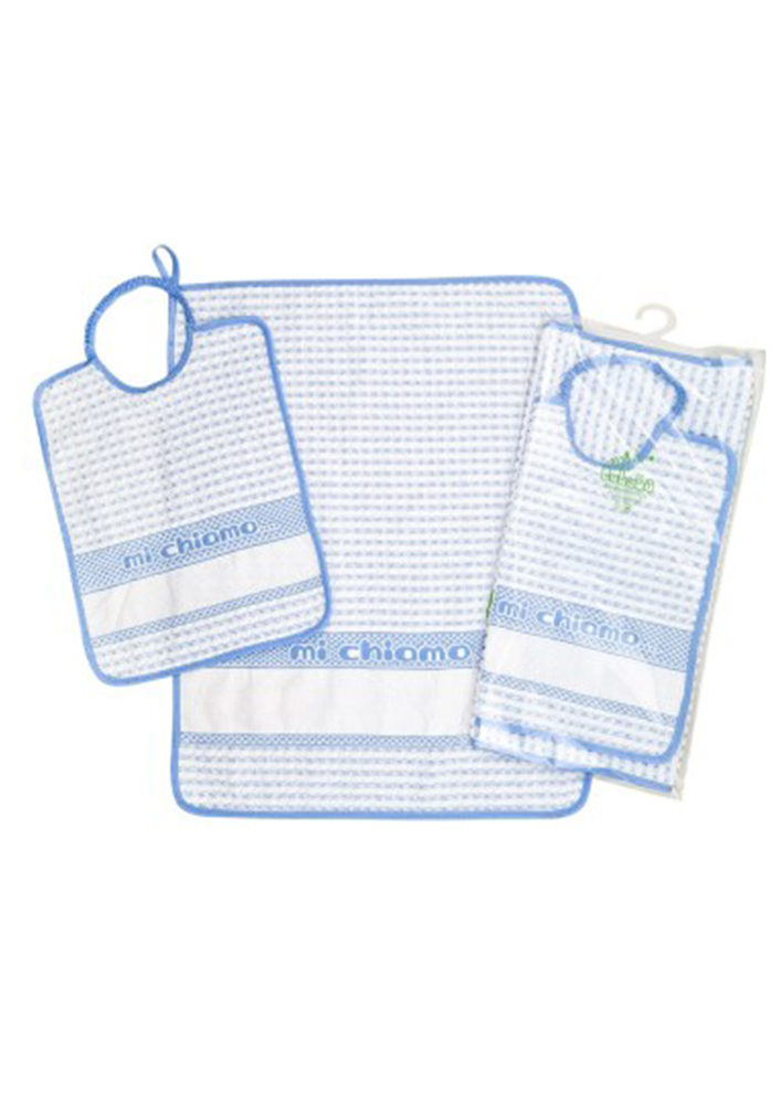 Set asilo da ricamare composto da bavaglino con elastico e asciugamano in spugna di cotone con fascia in etamine per il ricamo.