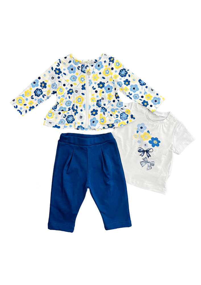Il completo 3 pezzi della neonata della linea Loleta è un capo di moda pensato per le bambine che desiderano aggiungere un tocco di eleganza e stile al loro look. Realizzato in cotone, un materiale morbido e delicato sulla pelle, questo completo offre una sensazione di comfort e libertà di movimento, senza limitazioni durante l’attività fisica o quotidiana. Il design è arricchito da una trama raffinata con motivi floreali, che donano un effetto sofisticato e ricercato, perfetto per occasioni speciali o per dare un tocco glamour al look di tutti i giorni.
