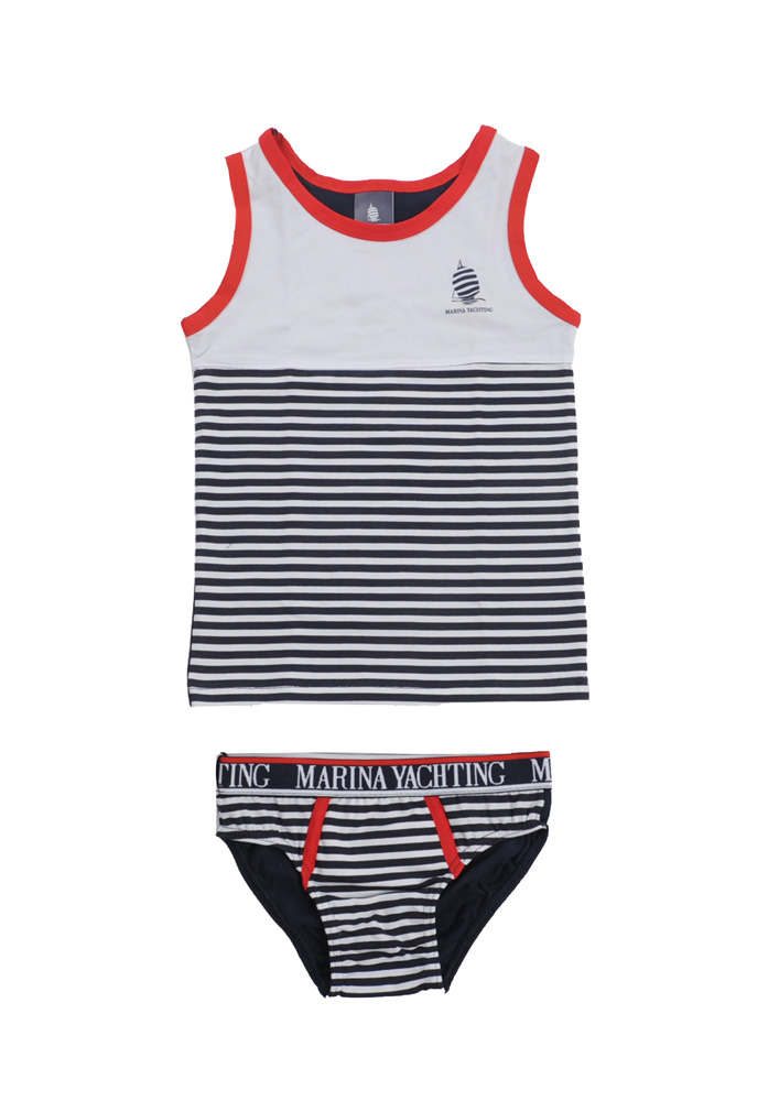 Il completo canottiera a spalla larga e slipper del bambino Marina Yachting è un prodotto di abbigliamento ideato per i bambini e bambine tra i 3 e i 7 anni. Questi indumenti, realizzati in cotone stretch, offrono comfort e protezione durante il tempo libero. Il completo canottiera a spalla larga e slipper del bambino Marina Yachting è disponibile per il sesso maschio.