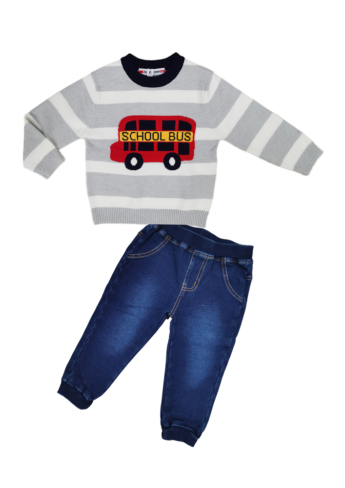 Il "COMPLETO MAGLIA LANA + PANTALONE JEANS NEONATO BOYZONE I" è un accessorio. Questo completo maglia e pantalone jeans, prodotto dal brand Boyzone, si rivolge ai neonati e bambini tra i 9 e i 30 mesi. Il completo è composto da lana, garantendo comfort, facilità di indossamento e riscaldamento durante l'attività quotidiana.