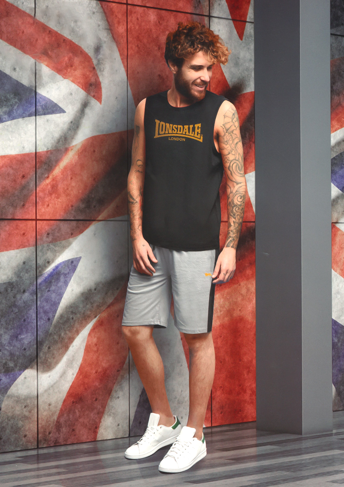 Il "COMPLETO SPALLA LARGA UOMO LONSDALE E" è un abbigliamento. Questo abbigliamento, prodotto dal brand Lonsdale, si rivolge agli adulti. La composizione principale dell'abbigliamento è cotone, che garantisce comfort e resistenza. Questo articolo presenta un design a spalla larga e una cintura elastica.