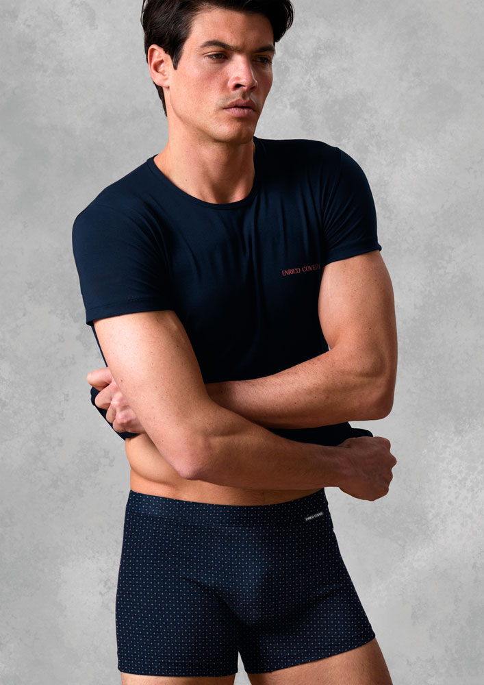 Il completo intimo da uomo della linea Coveri è un capo di alta qualità che combina comfort e stile. Realizzato in cotone stretch, un materiale morbido e aderente che si allunga con il movimento, offre una vestibilità comoda e flessibile. Il T-shirt ha collo a V e maniche corte, mentre la mutanda è lunga e copre le cosce. La combinazione di questi due pezzi garantisce un look elegante e raffinato che si adatta perfettamente all’abbigliamento sportivo o per occasioni informali.
