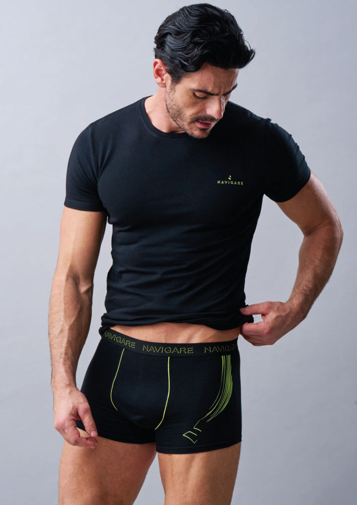 "Il completo intimo per uomo della linea Navigare è un capo di alta qualità e comfort. Realizzato in cotone stretch morbido ed elastico, offre una vestibilità aderente e confortevole, valorizzando la silhouette maschile. Il completo comprende una T-shirt e boxer, entrambi realizzati con lo stesso materiale principale, il cotone stretch. La composizione del completo, con 100% cotone, garantisce resistenza, elasticità e un’ottima durata nel tempo, evitando fastidi, strappi o cedimenti. Il design è arricchito da motivi sportivi raffinati e sofisticati, che donano un effetto elegante e ricercato."