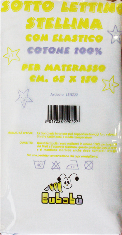 Il LENZUOLO SOTTO LETTINO BUBABU' è un lenzuolo in cotone prodotto dal marchio italiano Bubabù. Questo lenzuolo è progettato per bambini e bambine tra i 3 e i 7 anni e si caratterizza per la sua comodità e resistenza. Il cotone utilizzato nella produzione di questo lenzuolo è di alta qualità, garantendo un'elevata resistenza alla traspirazione e una buona igiene del corpo. Inoltre, grazie al design colorato e alle decorazioni unisex, questo lenzuolo è adatto per essere utilizzato da bambini di entrambi i sessi.