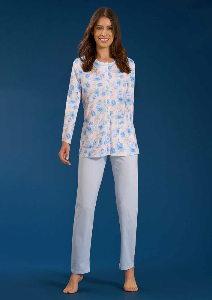 Il pigiama aperto per donne della linea Linclalor è un capo perfetto per aggiungere un tocco di comfort e relax al tempo libero quotidiano. Realizzato in 100% cotone, il tessuto morbido ed elastico del pigiama si adatta perfettamente alla forma del corpo della donna, garantendo una sensazione di comfort e libertà di movimento durante le attività da svolgere a casa o all'aperto. Il design è arricchito da motivi floreali e colori pastello, che donano un effetto sofisticato e ricercato, perfetto per occasioni speciali o per dare un tocco glamour al look di tutti i giorni.