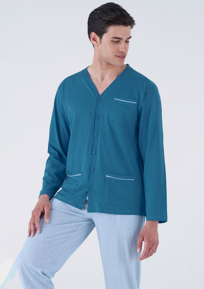 Il pigiama aperto con manica lunga per uomo della linea Karelpiù è un capo di abbigliamento ideale per le ore di riposo. Realizzato in cotone, un materiale naturale e confortevole che garantisce un comfort senza pari durante il riposo. Il design è semplice e funzionale, con una manica lunga che valorizza la silhouette del corpo. Il pigiama aperto è ideale per chi cerca qualità e comfort durante le ore di riposo.