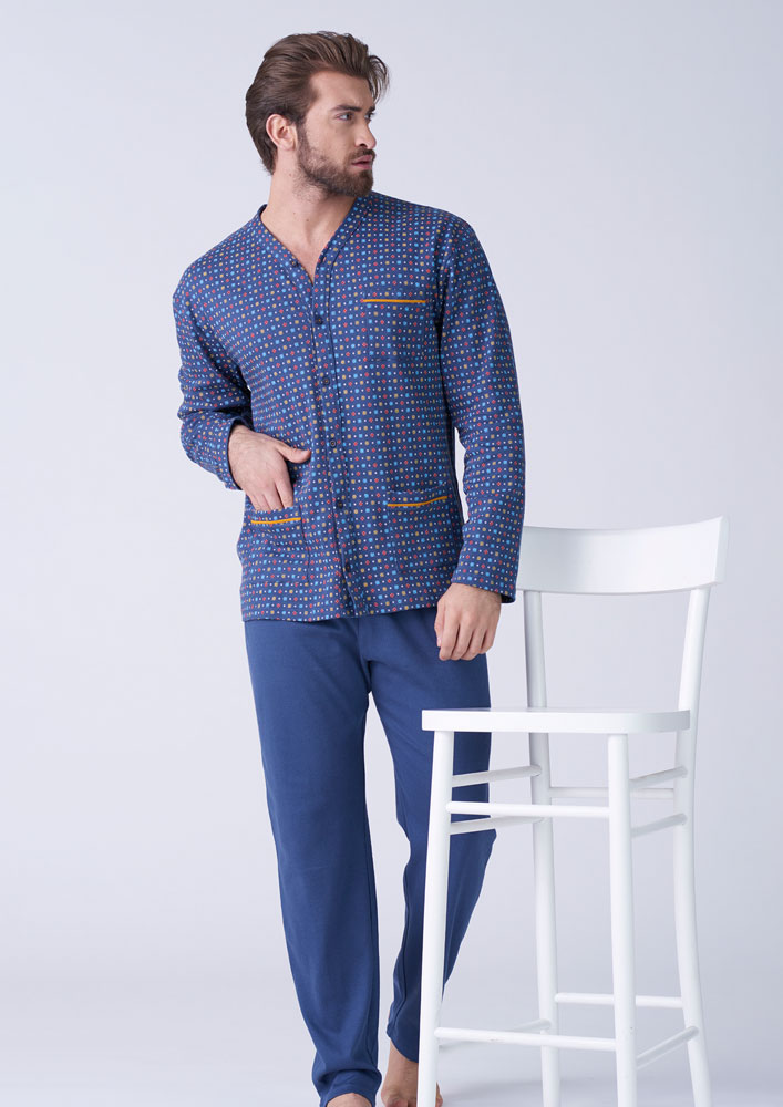 Il pigiama uomo Karelpiù è un capo comodo e confortevole da indossare durante il riposo notturno. Realizzato in caldo cotone, offre una sensazione di morbidezza sulla pelle e un’ottima traspirabilità, mantenendo l'uomo sempre asciutto e comodo. Il design è semplice ed elegante, con maniche lunghe per coprire il braccio e un modello abbottonato in vita per una facile vestibilità.