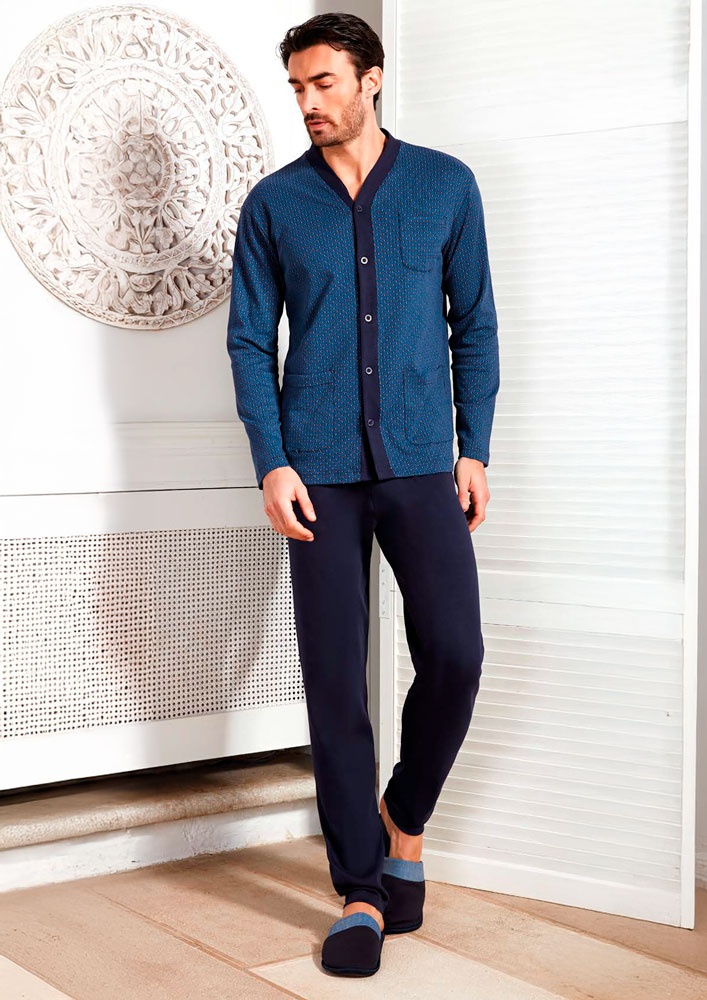 Il pigiama aperto con manica lunga dell'uomo della linea Nottingham è un capo intimo essenziale e funzionale. Realizzato in caldo cotone, offre una vestibilità comoda e traspirante, ideale per le ore di riposo. La sua composizione calda e morbida assicura un comfort senza pari durante il riposo, mentre la sua forma aperta con manica lunga garantisce una libertà di movimento senza limitazioni. Ideale per uomini che cercano un capo intimo funzionale e confortevole per le loro ore di riposo.