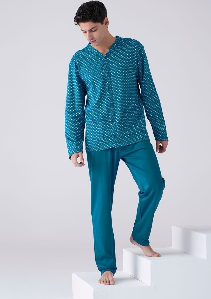 Il pigiama aperto a manica lunga Pigiamiamoci è un capo di abbigliamento intimo per uomo, realizzato in 100% caldo cotone. È ideale per chi cerca una vestibilità comoda e confortevole, senza sacrificare la sensazione di eleganza e sofisticatezza che solo un capo di abbigliamento intimo può offrire.