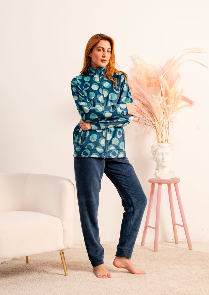 "Il pigiama full zip della linea Kissimo è un'opzione ideale per una notte di riposo rilassante. Realizzato in coral fleece, un materiale morbido e caldo che garantisce un comfort senza pari durante le ore di riposo. Il design elegante e sofisticato dona un tocco di fascino irresistibile, rendendo questo pigiama davvero unico. Ideale per chi cerca un prodotto di alta qualità e comfort, con una vestibilità aderente e un elastico in vita che assicura una perfetta tenuta senza fastidi."