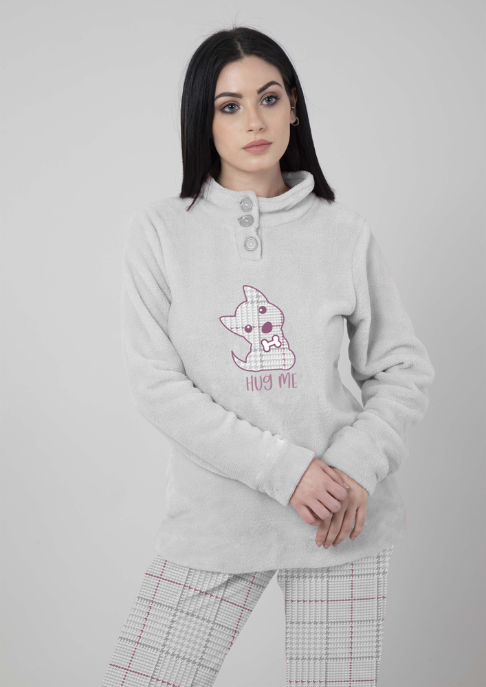 Questo pigiama è un elegante abbigliamento da notte femminile realizzato in flanella, un materiale morbido e caldo che garantisce un comfort senza pari durante le ore di riposo. Il brand Papalina è noto per la sua attenzione ai dettagli e alla qualità dei propri prodotti, che si riflette nella finezza del tessuto e nell'eleganza delle linee di questo pigiama. Destinato a donne che cercano un prodotto di alta qualità e comfort.