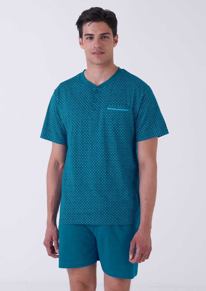 Questo pigiama per uomo è un capo comodo e confortevole. Realizzato in cotone, un materiale naturale e morbido, garantisce una sensazione di freschezza sulla pelle. La sua vestibilità aderente e la sua elasticità assicurano una perfetta tenuta senza fastidi. Un capo ideale per chi cerca qualità e relax.