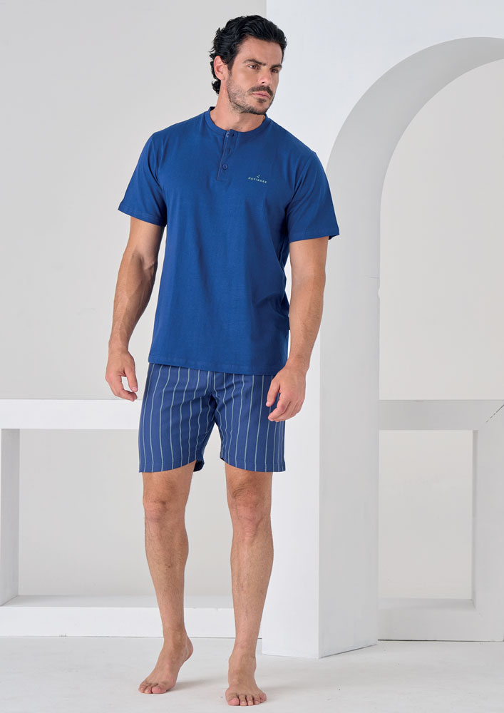 Il pigiama manica corta per uomini della marca Navigare è un'opzione comoda e confortevole. Realizzato in cotone popeline, il tessuto morbido e traspirante garantisce una notte di riposo rilassante. La vestibilità aderente e le maniche corte creano un look elegante e sofisticato.