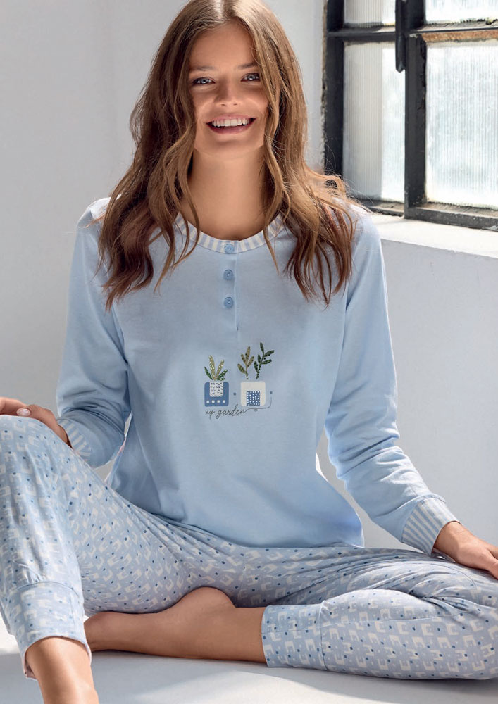 Questo pigiama è un’elegante scelta per l’abbigliamento da notte femminile. Realizzato interamente in cotone, materiale naturale e confortevole che garantisce un riposo senza pari. La manica lunga aggiunge un tocco di eleganza al design, rendendo questo pigiama perfetto per donne che cercano un abbigliamento comodo e confortevole per le ore di riposo.