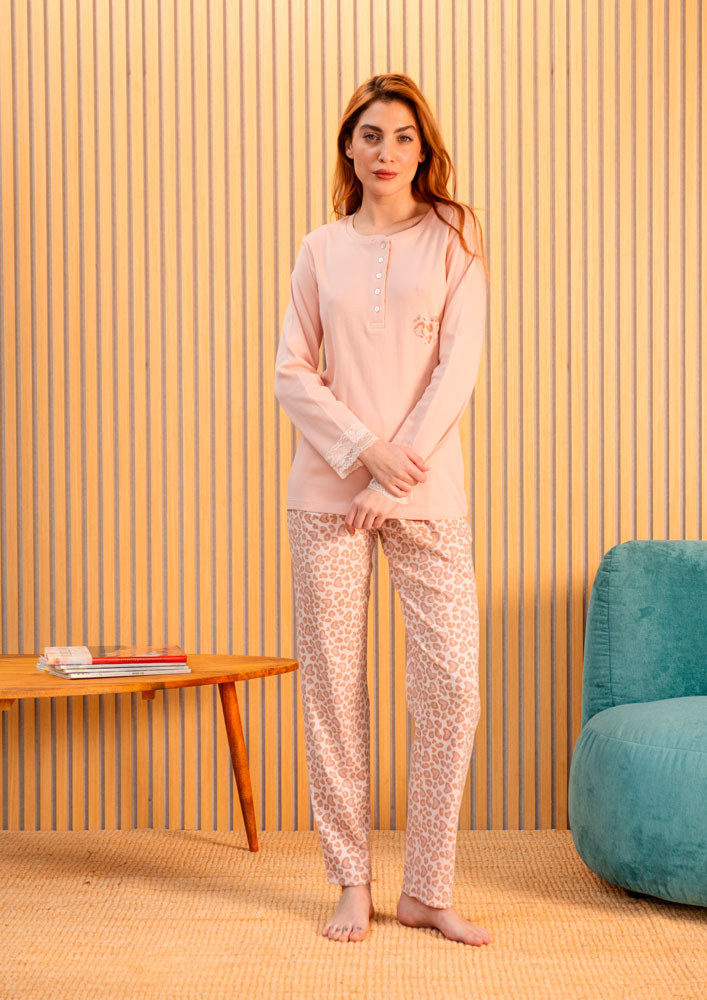 "Il pigiama della linea Kissimo è un'opzione ideale per una notte di riposo rilassante. Realizzato in caldo cotone, un materiale morbido e caldo che garantisce un comfort senza pari durante le ore di riposo. Il design elegante e sofisticato dona un tocco di fascino irresistibile, rendendo questo pigiama davvero unico. Ideale per chi cerca un prodotto di alta qualità e comfort, con una vestibilità aderente e un elastico in vita che assicura una perfetta tenuta senza fastidi."