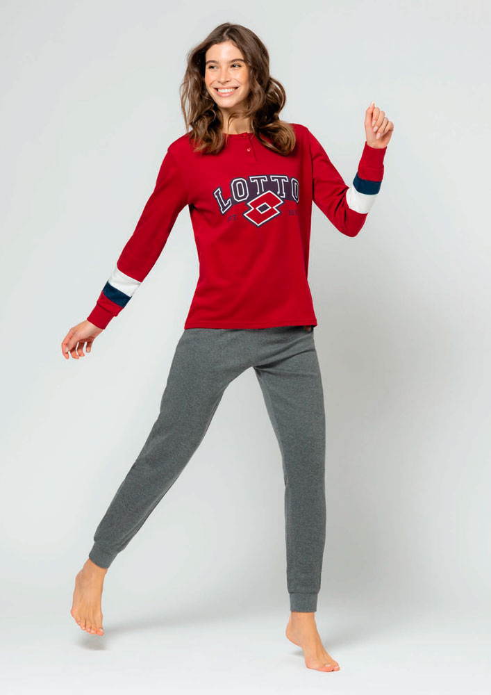 Il pigiama della linea Lotto è un capo di abbigliamento perfetto per le ore di riposo. Realizzato in caldo cotone, offre una sensazione di morbidezza e comfort sulla pelle. La lunga manica garantisce copertura completa delle braccia, mentre la vestibilità aderente e confortevole assicura un’ottima tenuta durante il sonno.