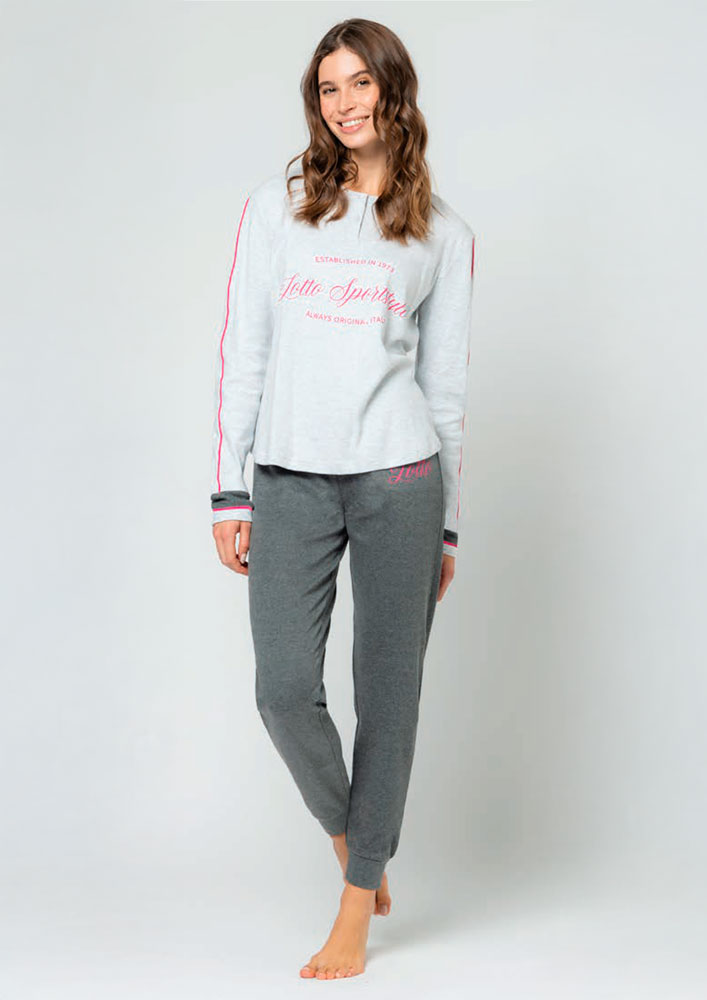 Il pigiama della linea Lotto è un capo di abbigliamento perfetto per le ore di riposo. Realizzato in caldo cotone, offre una sensazione di morbidezza e comfort sulla pelle. La lunga manica garantisce copertura completa delle braccia, mentre la vestibilità aderente e confortevole assicura un’ottima tenuta durante il sonno.