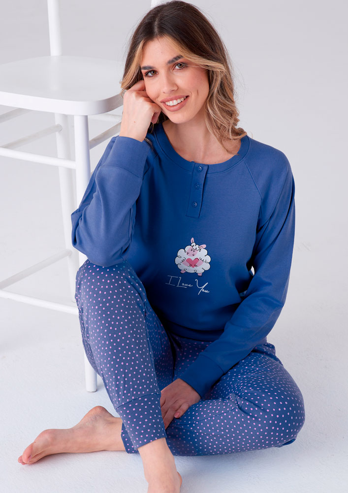 Il pigiama a manica lunga Pigiamiamoci è un capo di abbigliamento intimo per donna, realizzato in caldo cotone. È ideale per chi cerca una vestibilità comoda e confortevole, senza sacrificare la sensazione di eleganza e sofisticatezza che solo un capo di abbigliamento intimo può offrire.