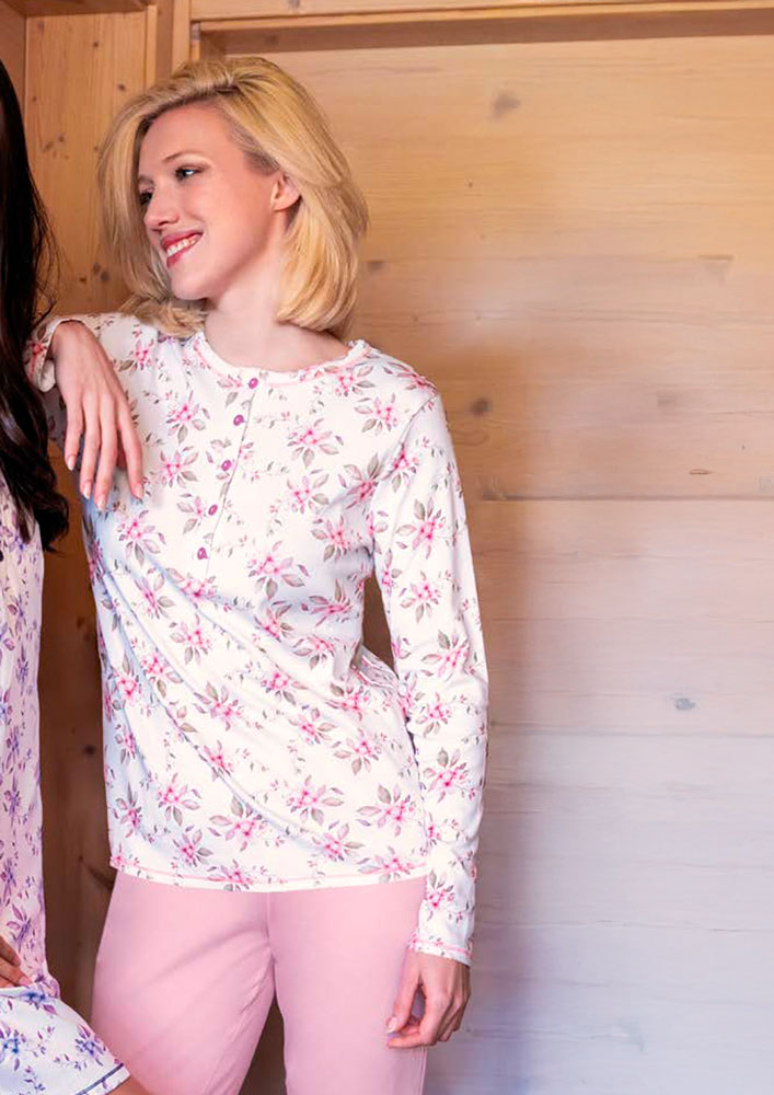 Il pigiama con manica lunga della linea Sielei è un capo di alta qualità pensato per offrire comfort e relax durante le ore di riposo.