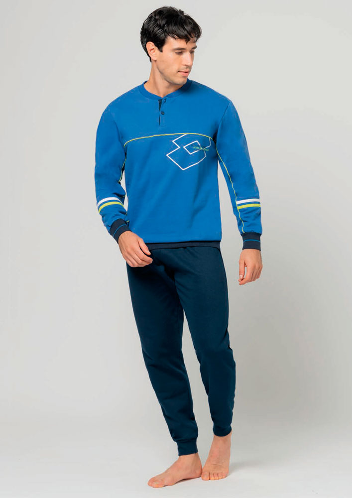 Il pigiama a manica lunga Lotto è un capo di abbigliamento intimo per uomo, realizzato in felpa morbida ed elastica. È ideale per chi cerca una vestibilità comoda e confortevole, senza sacrificare la sensazione di eleganza e sofisticatezza che solo un capo di abbigliamento intimo può offrire.