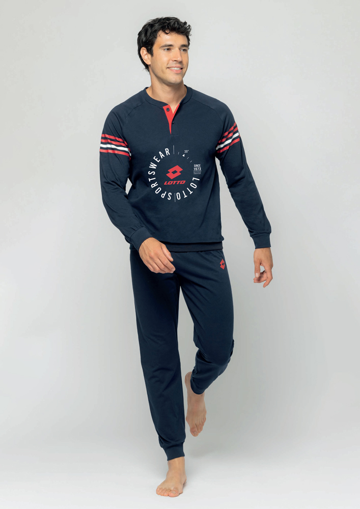 Questo pigiama è un elegante abbigliamento da notte per uomo, realizzato interamente in cotone. È ideale per chi cerca un prodotto comodo e confortevole per le ore di riposo. Il brand Lotto è noto per la sua attenzione ai dettagli e alla qualità dei propri prodotti, che si riflette nella finezza del tessuto e nell'eleganza delle linee di questo pigiama. Destinato a uomini adulti che cercano un prodotto di alta qualità e comfort.