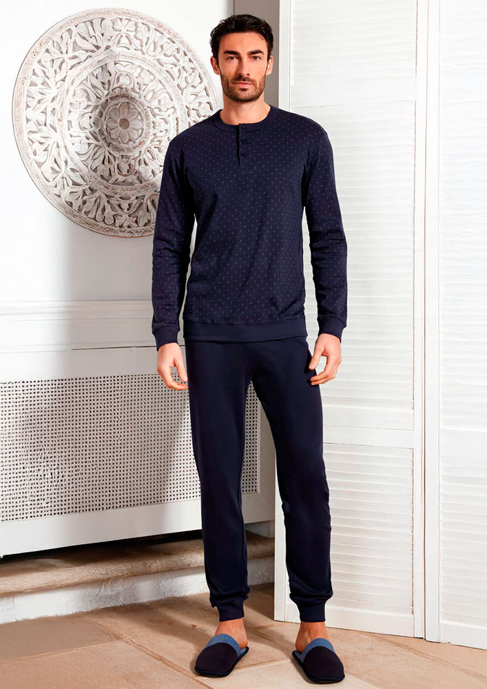 Il pigiama con manica lunga dell'uomo della linea Nottingham è un capo intimo essenziale e funzionale. Realizzato in caldo cotone, offre una vestibilità comoda e traspirante, ideale per le ore di riposo. La sua composizione calda e morbida assicura un comfort senza pari durante il riposo, mentre la sua forma con manica lunga garantisce una libertà di movimento senza limitazioni. Ideale per uomini che cercano un capo intimo funzionale e confortevole per le loro ore di riposo.