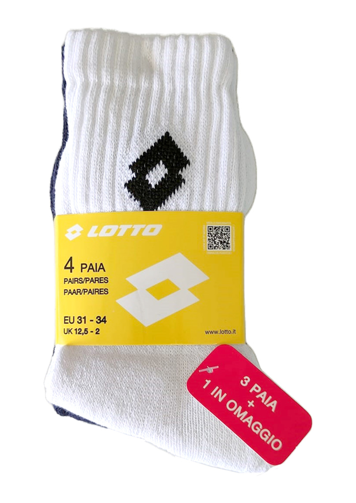 Il Quadripack Calza Unisex Lotto è un accessorio. Queste calze, prodotte dal brand Lotto, si rivolgono ai bambini di età compresa tra i 4 e i 12 anni. Sono realizzate in cotone, garantendo comfort, facilità di indossamento e protezione durante l'attività quotidiana all'aperto.