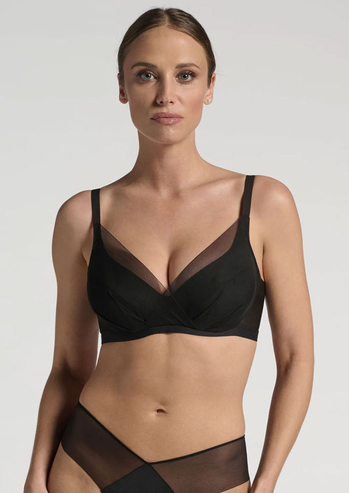 Il balconcino LepelBra è l’espressione perfetta del know-how Lepel: una costruzione interna studiata per offrire sostegno impeccabile e vestibilità superiore, senza rinunciare alla leggerezza. Realizzato in morbido Microspacer, garantisce una vestibilità generosa e confortevole, particolarmente apprezzata anche nelle coppe C-D-E, senza l’utilizzo di ulteriori fodere. La struttura interna, cucita con una tecnica ultra piatta, assicura un sostegno efficace riducendo al minimo i segni sul corpo. La nuova linea di scollo, più aperta e delicatamente sagomata, dona un tocco femminile e raffinato, mantenendo un’eleganza discreta. Il velo di tulle 20 denari, che avvolge il capo e si incrocia sul davanti, crea un morbido drappeggio sotto il seno: un dettaglio sartoriale che vela la coppa con leggerezza e regala al reggiseno un’allure sofisticata e senza tempo. La balza in Tulle Powernet, più sostenuta, assicura un contenimento efficace del sottobraccio senza segnare, per una vestibilità morbida e rassicurante. Al tatto il capo risulta morbido e leggero, ma una volta indossato sorprende per il sostegno stabile e avvolgente, grazie anche al moderno elastico satinato sottoseno, studiato per consolidare il supporto nel punto giusto. Un balconcino pensato per accompagnare ogni giorno con comfort, sicurezza ed eleganza naturale.
