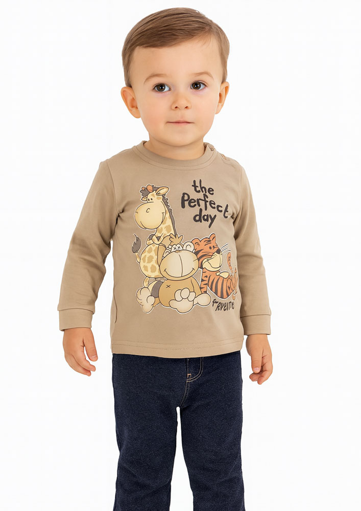 "La t-shirt manica lunga neonato della linea Basic è un capo di alta qualità che offre comfort e praticità. Realizzato in caldo cotone, un materiale morbido ed elastico che si adatta perfettamente alla forma del corpo, garantendo una sensazione di comfort e libertà di movimento. La t-shirt manica lunga neonato è ideale per neonati dai 9 ai 30 mesi, che possono indossarla durante le attività quotidiane o per giocare all'aperto. Il design è semplice e elegante, con linee nette e precise che valorizzano la silhouette."