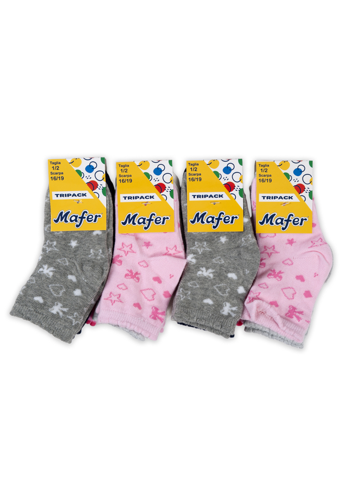 Il tripack calza corta baby Mafer è un prodotto di abbigliamento ideato per neonati e bambini di età compresa tra i 9 e i 30 mesi. Questa calza, realizzata in caldo cotone, offre comfort e facilità di indossamento durante l'orario di riposo o il tempo libero. Il design del tripack è unisex e presenta una semplicità che la rende versatile per entrambi i sessi.