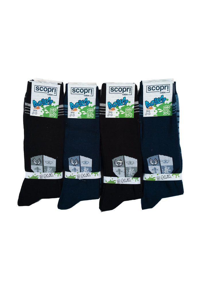 Il tripack calza lunga maschio Scopri è un prodotto di abbigliamento ideato per i bambini. Queste calze, realizzate in cotone caldo, offrono comfort e facilità di indossamento durante l'orario di riposo. Il tripack calza lunga maschio Scopri presenta il marchio Scopri e è destinato a una fascia età Generico 4/12 anni. Sono adatti al sesso maschile.