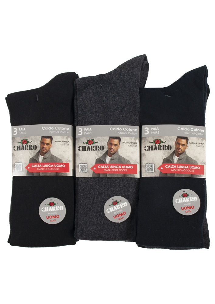 Il "TRIPACK CALZA LUNGA UOMO CHARRO" è un accessorio. Queste calze lunghe, prodotte dal brand Charro, si rivolgono agli uomini di età adulta. Le calze sono composte principalmente di cotone, garantendo comfort e facilità di indossamento durante l'attività quotidiana.