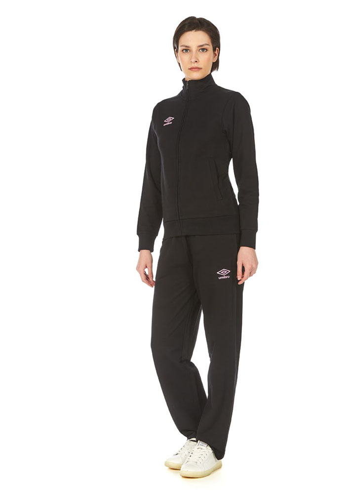 La tuta sportiva della linea Umbro è progettata per le donne che amano l'attività fisica. Realizzata con una miscela di 60% poliestere e 40% cotone, offre comfort, elasticità e traspirabilità grazie al tessuto leggero e respirante. Ideale per chi pratica sport o semplicemente vuole sentirsi comoda e libera durante le ore di svago. Il design è arricchito da una trama raffinata con motivi geometrici, che dona un effetto dinamico e moderno.