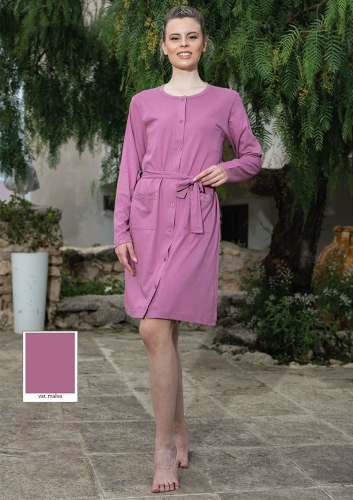 Questa vestaglia è un'elegante scelta per l'abbigliamento da notte femminile. In particolare, sono realizzate interamente in cotone, un materiale naturale e confortevole che garantisce un comfort senza pari durante le ore di riposo. Il brand Baci di Notte è noto per la sua attenzione ai dettagli e alla qualità dei propri prodotti, che si riflette nella finezza del tessuto e nell'eleganza delle linee di questa vestaglia. Destinata a donne che cercano un prodotto di alta qualità e comfort, con una eleganza e sofisticazione garantita per un riposo sereno.