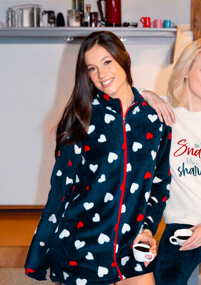 Questa vestaglia è un’elegante scelta per l’abbigliamento da notte femminile. Realizzata in coral fleece, un materiale morbido e soffice che garantisce un comfort senza pari durante le ore di riposo. Il design con zip in corallo aggiunge un tocco di eleganza e sofisticato alla silhouette, rendendo questa vestaglia davvero unica. Ideale per chi cerca un prodotto di alta qualità e comfort, pensato per donne che amano sentirsi speciale e desiderata.