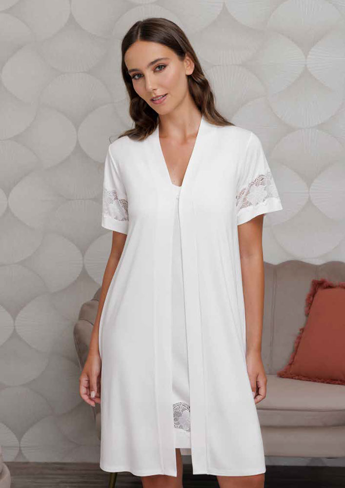 La vestaglia con manica corta della linea Andra è un capo ideale per le ore di riposo. Realizzata in viscosa morbida ed elastica, avvolge il corpo con una sensazione di comfort e relax, valorizzando la silhouette femminile. Il design è elegante e sofisticato, con maniche corte che si abbinano perfettamente al pigiama aperto, creando un effetto rilassante e seducente. Ideale per donne che cercano un prodotto di alta qualità e comfort, questa vestaglia è pensata per essere indossata in occasioni speciali o semplicemente come capo di abbigliamento quotidiano.